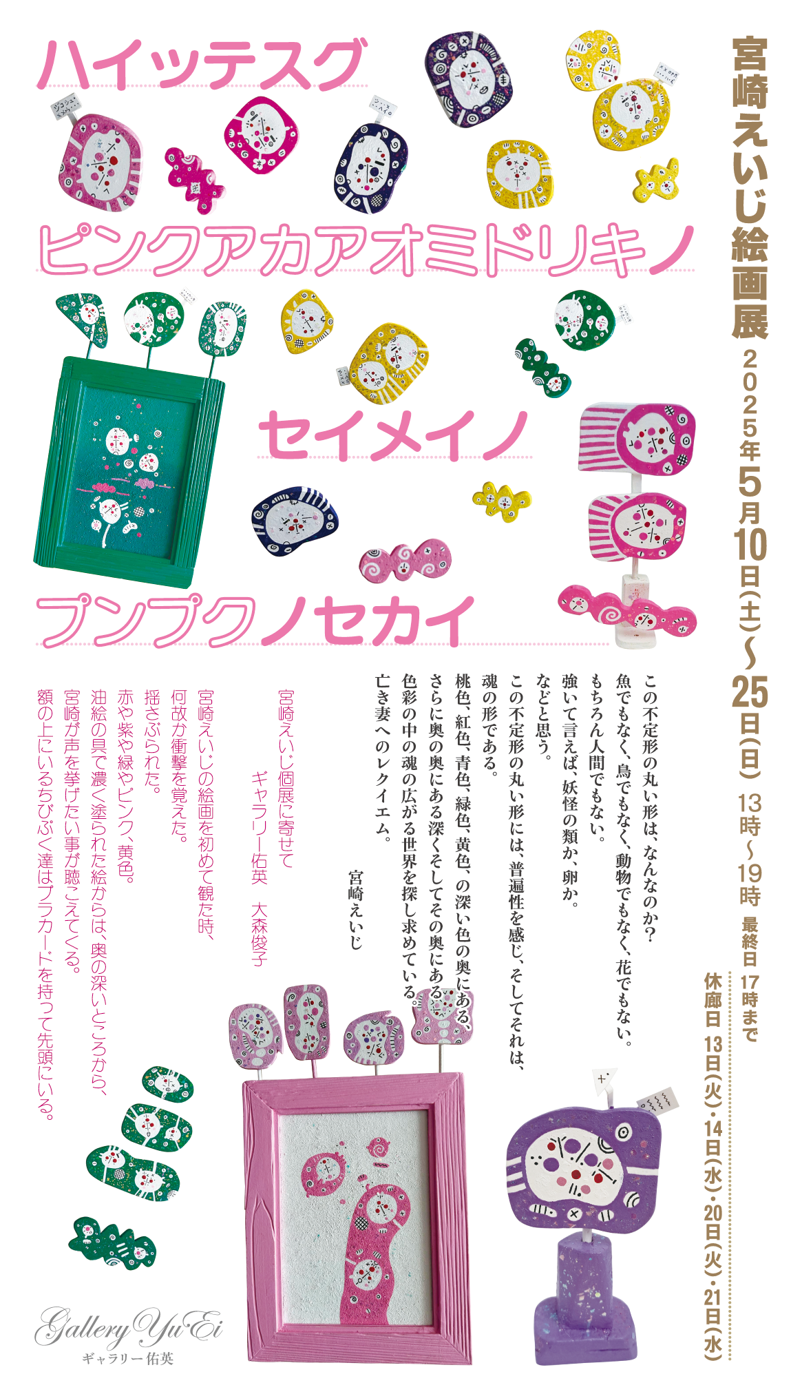 ■ 宮崎えいじ絵画展 「ハイッテスグピンクアカアオミドリキノセイメイノプンプクノセカイ」 2025年5月10日(土)〜25日(日)