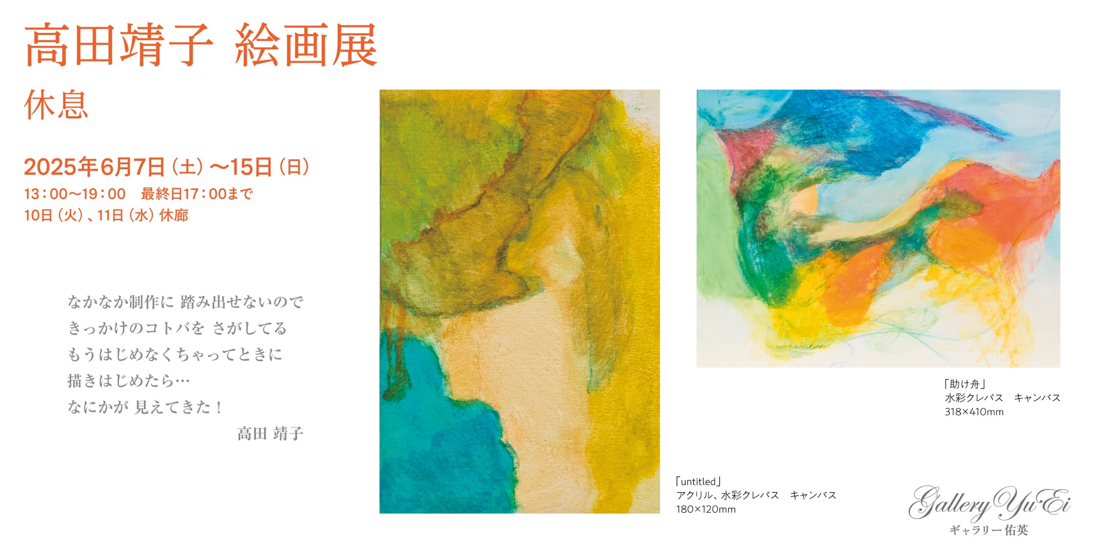 ■ 高田靖子絵画展 休息 2025年6月7日(土)〜15日(日)