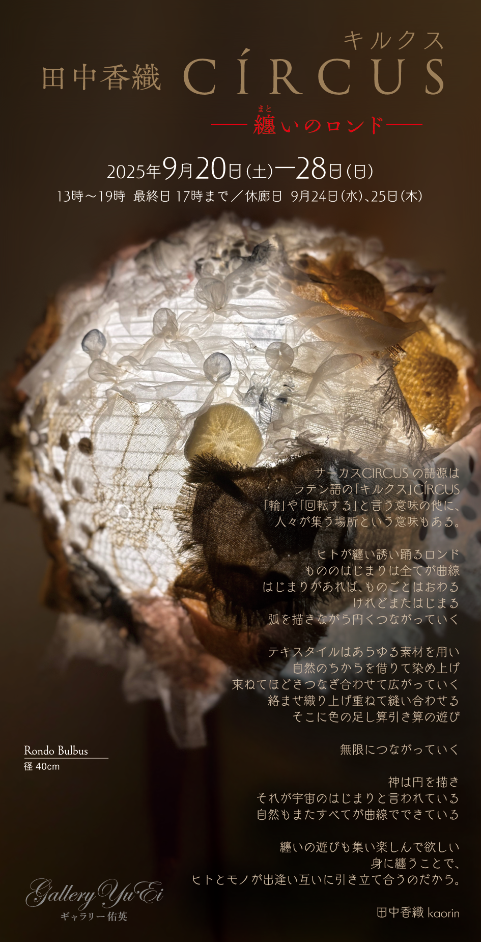 ■ 田中香織 CÍRCUS キルクス —纏いのロンド— 2025年9月20日(土)〜28日(日)