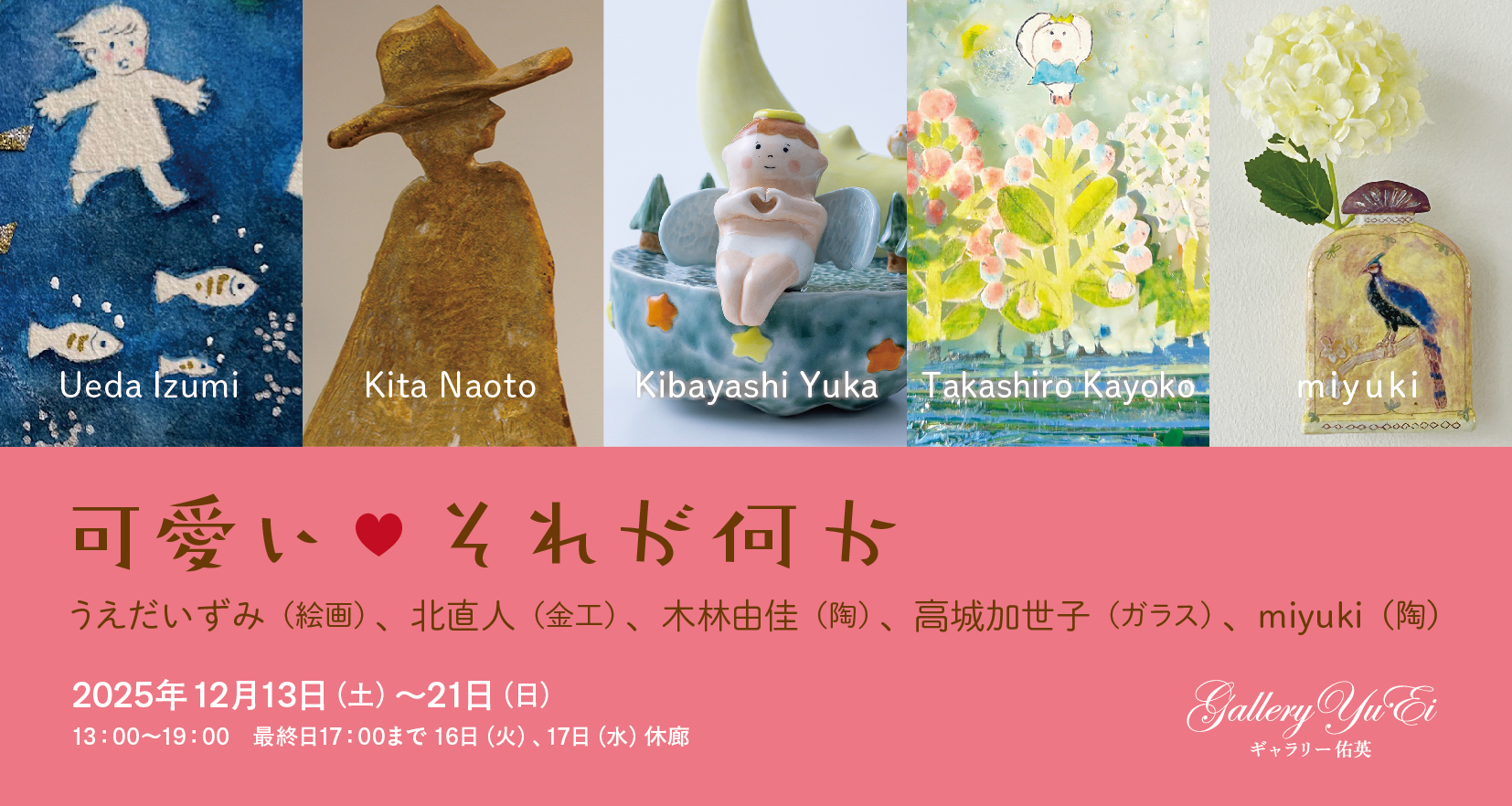 ■ 可愛い♥それが何か うえだいずみ(絵画)、北直人(金工)、木林由佳(陶)、高城加世子(ガラス)、miyuki(陶) 2025年12月13日(土)〜21日(日)