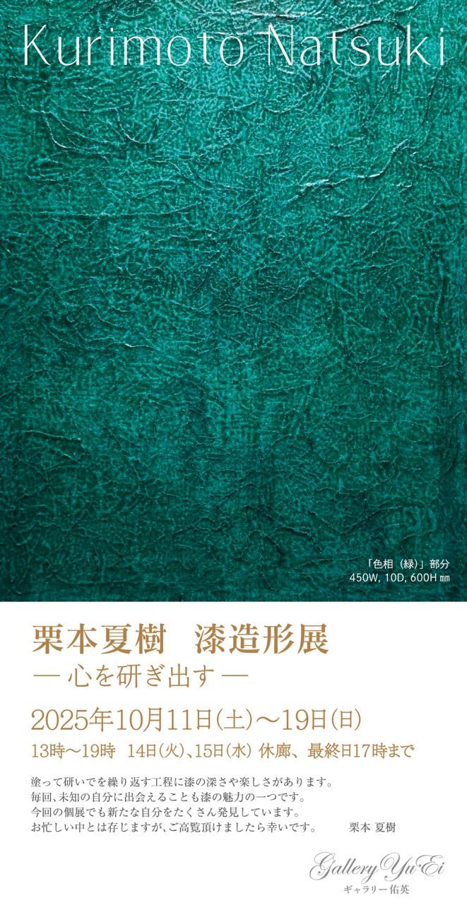 ■ 栗本夏樹 漆造形展 −心を研ぎ出す− 2025年10月11日(土)〜19日(日)