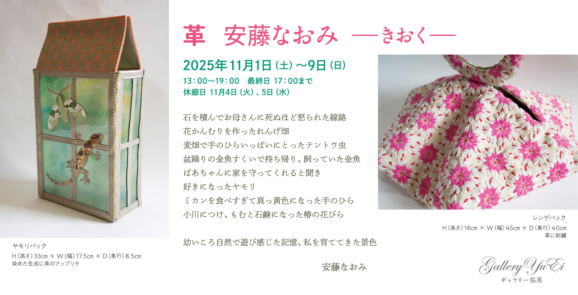 ■ 革 安藤なおみ ―きおく― 2025年11月1日(土)〜9日(日)