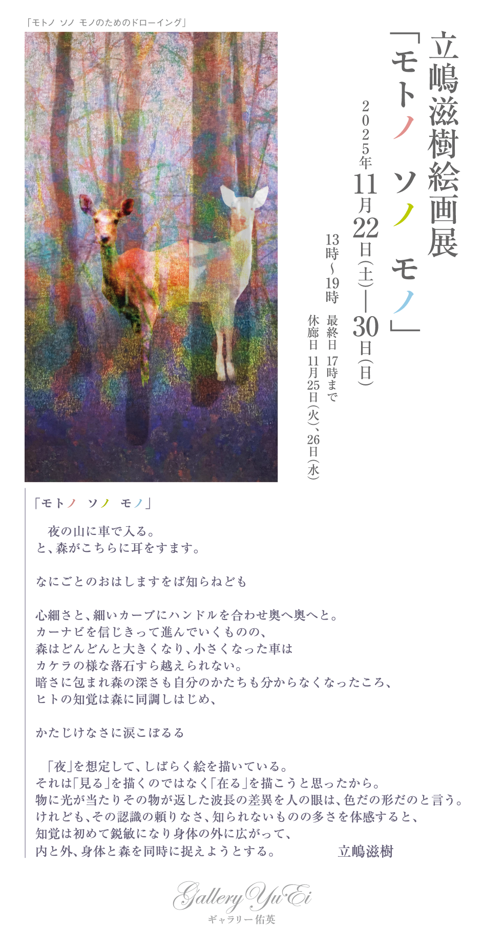 ■ 立嶋滋樹絵画展 「モトノ ソノ モノ」 2025年11月22日(土)〜30日(日)